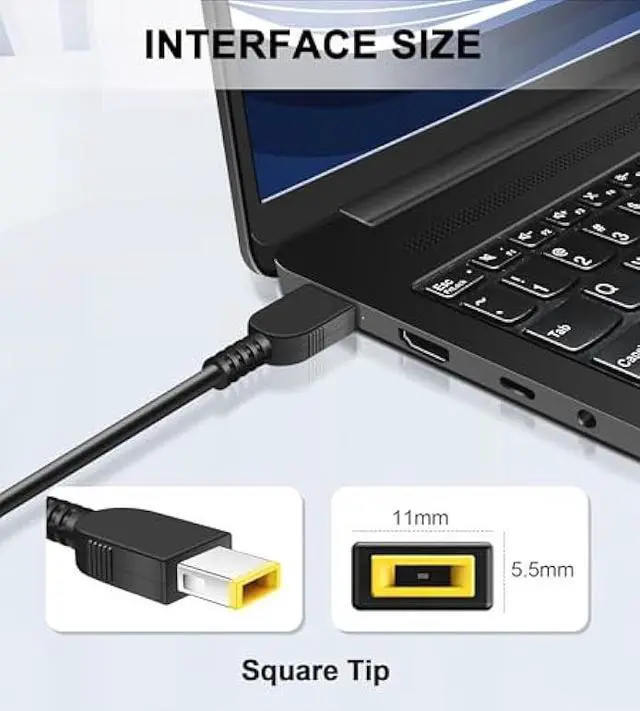 Type: Yellow Square Tip (Not a USB-C). 65W Power Adapter Charger is also compatible with 20V- 2.25A 45W Laptop