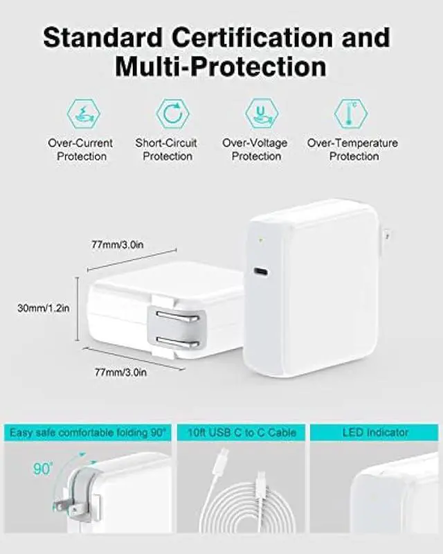Soft LED Indicator and Foldable Plug: cool-green LED emits a soft, gentle glow so you can see your device has power; with a foldable plug protect screen from scratches, make it more portable for travel