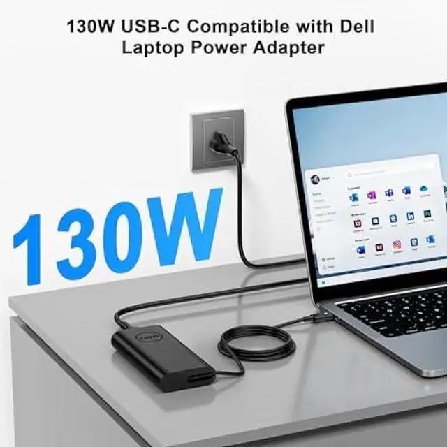 Input Voltage: 100-240V 50-60Hz, Output: 5V/9V/15V/20V - 1A/ 6.5A 130W, Compatible with 100W 90W 65W Dell USB C Charge, Package with 1x 130W Ac adapter and 1x Ac power cord