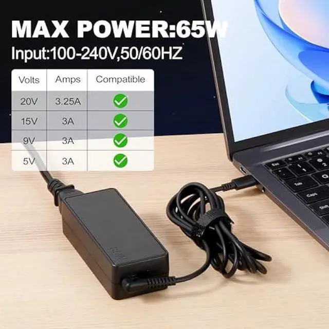 65W FAST CHARGING - Provides 65W high-speed power to quickly charge your Lenovo laptops, saving time and keeping your device ready for work or play