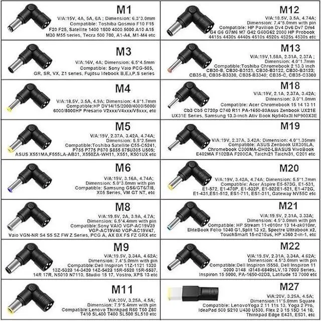 Output: DC 18.5 v 19v 19.5 v 20v, Max 65W. Replacement 65W laptop charger, Replacement 45W chromebook charger. Incompatible with Gateway laptop, 12 volt or 90W laptops