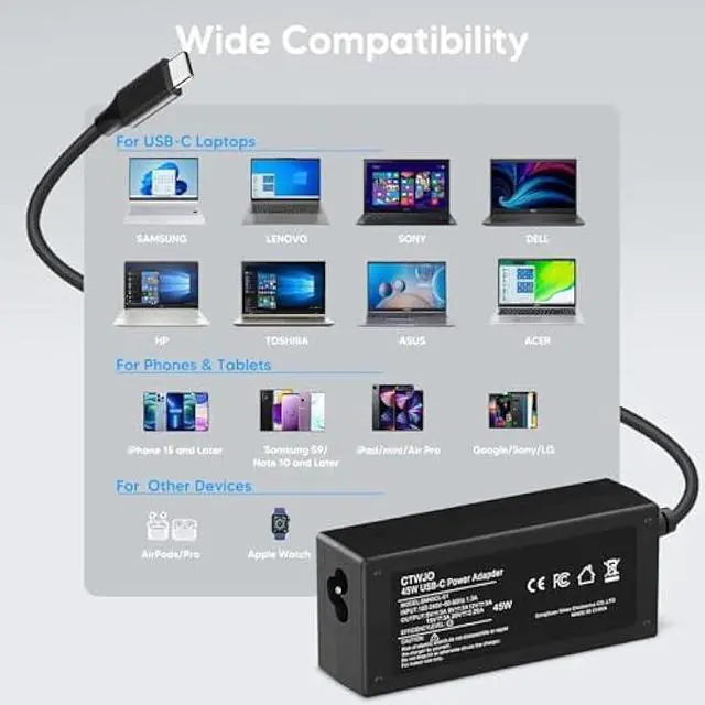 Universal Laptop Charger for Dell 45W USB C, Product