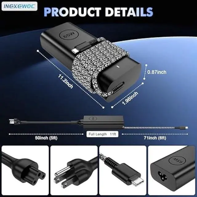 COMPATIBLE WITH DELL COMPUTERS - INEXEWOC USB C 65w charger Compatible with dell Chromebook 13 3380, Chromebook, Chromebook 3400 3500 3100 3100 2-in-1 / 3110 / 3110 2-in-1 / 7486 2-in-1 /13 3380, Inspiron 14 16 7490 / 7306 2-in-1 Black / 7400 / 7425 2-in-1 / 7415 2-in-1 / 5410 2-in-1 / 16 7620 2-in-1 / 7420 2-in-1 / 5310 / 5320 / 7300 / 3420 / 16 7630 2-in-1 / 16 5630 / 7430 2-in-1 / 7435 2-in-1