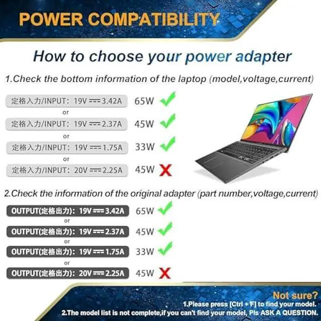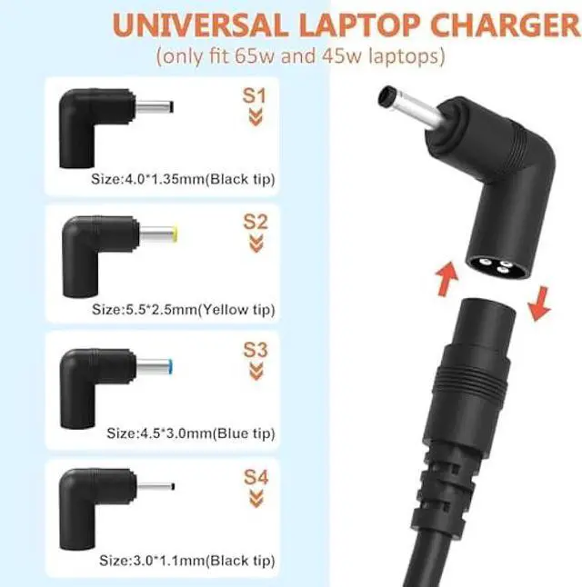 Output DC: 19V~ 3.42A for 65W, 19V~ 2.37A for 45W, also compatible for 19V~ 1.75A 33W