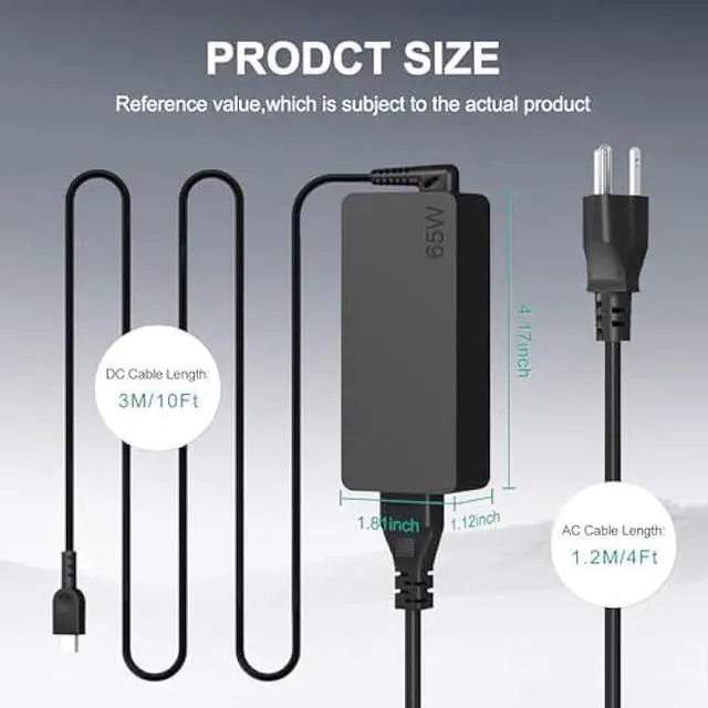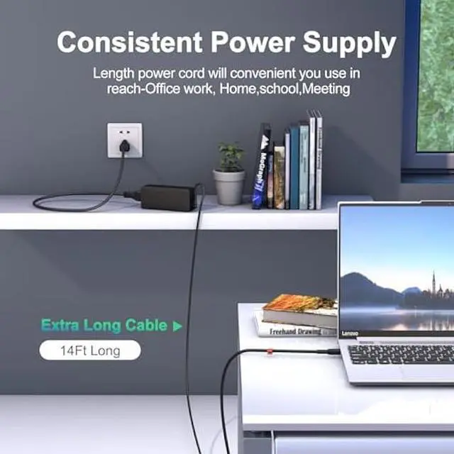 C65W 45W USB C Laptop 14FT Long Charger: 10FT USB Type C Cable & 4FT AC Power Cable. It's the perfect cable for any occasion. Use it anywhere - at home, in the office, on the go. With extra length, you can charge comfortably without being limited by space or distance.