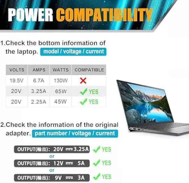 Our 65w usb c charger delivers fast and efficient charging with an input of 100-240V~ 1.5A 50-60Hz and output of 5V~3A /9V~3A /12V~5A /15V~ 4.33A /20V~ 3.25A, making it perfect for all your charging needs