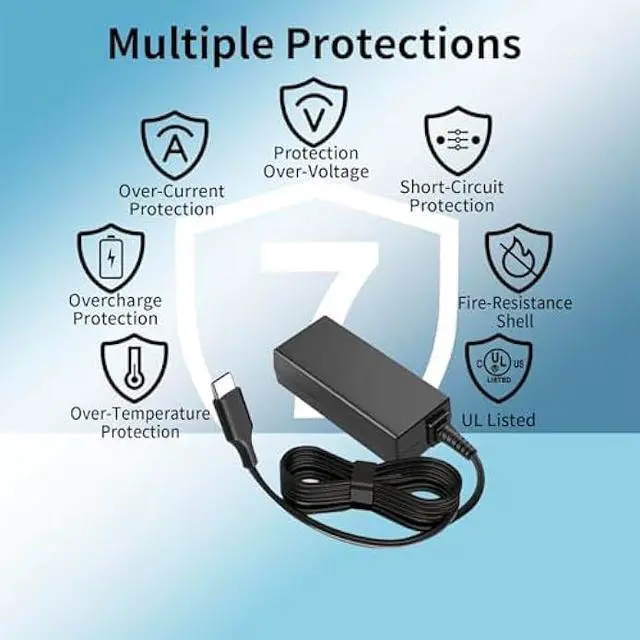 Safety, Durability, School-Charger, Hassle-Free Returns; This Universal 65W USB C Laptop Charger combines multiple safety certifications and built-in protection for secure charging. Rigorously tested for durability and stability, it's perfectly suited for school environments and student needs. Plus, with a 60-day no-reason refund and 12-month defect-free replacement, your purchase is worry-free and guaranteed!