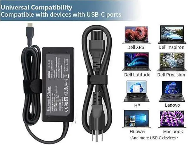 Efficient & Fast Charging: We have tested charging from 0% to 60% in 40 minutes and 60% to 100% in 80 minutes; 65W USB-C Laptop Charger, Universal Compatible with All USB-C Laptops Works seamlessly with Dell, HP Chromebook, Lenovo ThinkPad; 11FT Extra-Long Cable for Flexible Use