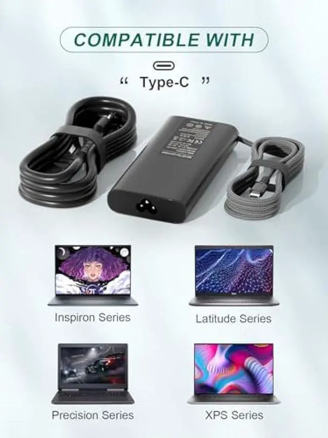Size: USB Type C. PLEASE CONFIRM THE SPECIFICATIONS OF YOUR DELL POWER ADAPTER BEFORE ORDERING.