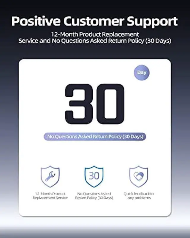 30-Day Hassle-Free Returns & 12-Month Friendly Support: Covered by 's return service and backed by a full year of fast, reliable customer care