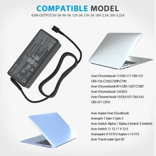Input: 100V-240V 50-60Hz 1.8A, Connector: 100w USB-C, Output: 5V 3A, 9V 3A, 10V 5A, 12V 5A, 15V 3A, 18V 5A, 20V 5A, 100W Max, Compatible with 90W 65W 45W