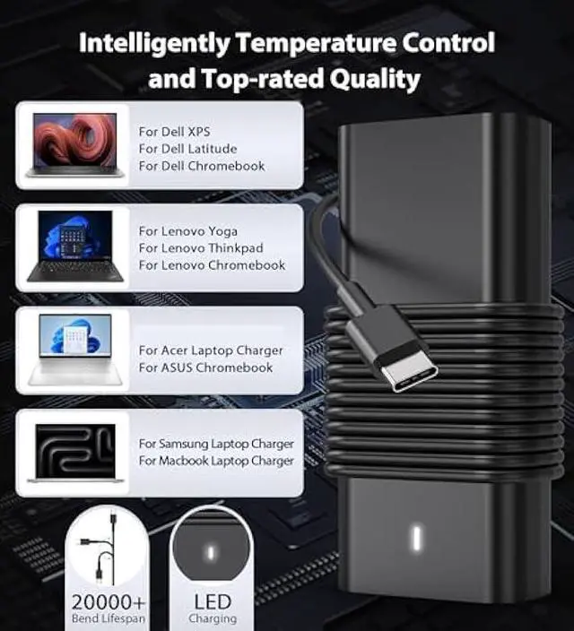 Compatible with Dell Laptop Charger USB C: Replacement For Dell Latitude 5289 5290 5400 7275 7320 7520 5190 3390 3300 7200 7310 7285 7520 7370 7380 7390 9410 9420 5175 7275 7212 3120