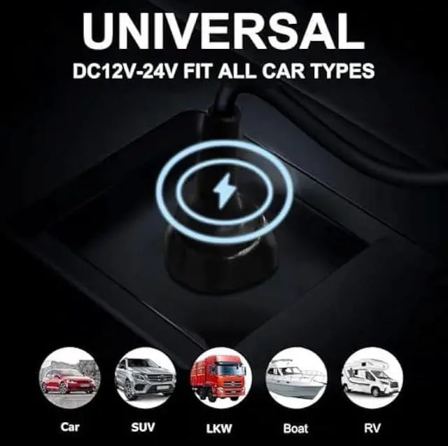 Output: USB-C port DC 5V-20V 5A (max), USB-A port DC 5V 3A (max). With rectifier technology, fast charging efficiency increases by turning the voltage fluctuations into stable voltage with up to 100W +18W power delivery. Fit for 12V Cars, 24V Trucks, Travel Trailer, RV, Buses, School Buses, SUV, ATV, Van, Boat, Yachts, Airplanes, Portable Power Station, Bike, Campers and Motorcycles etc;