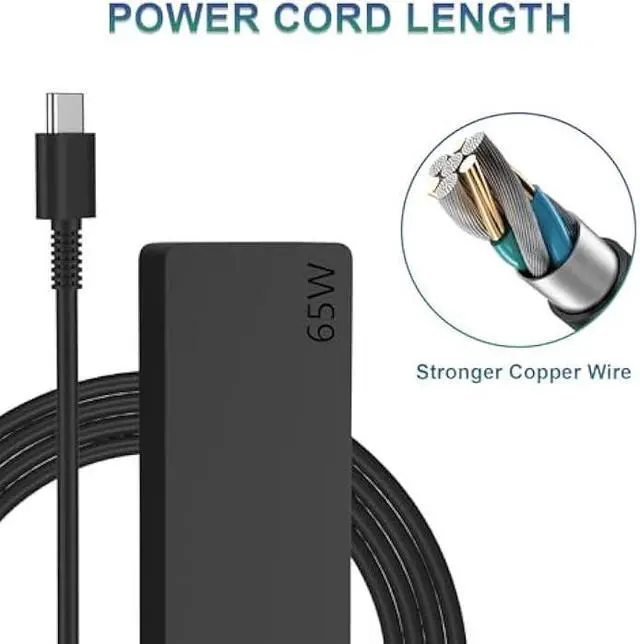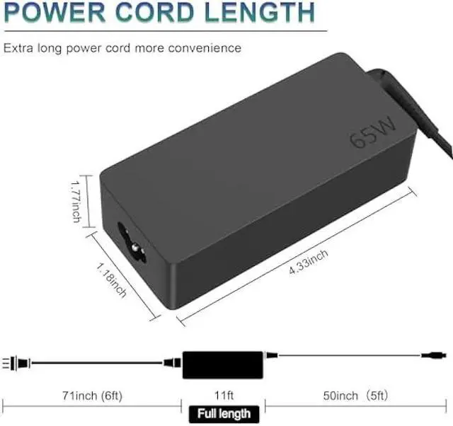 Travel-friendly design - Compact and lightweight, this compatible with lenovo laptop charger 65w is perfect for home, school, office, or travel, with a 5ft DC USB-C cable and a 6ft AC power cord for extra convenience