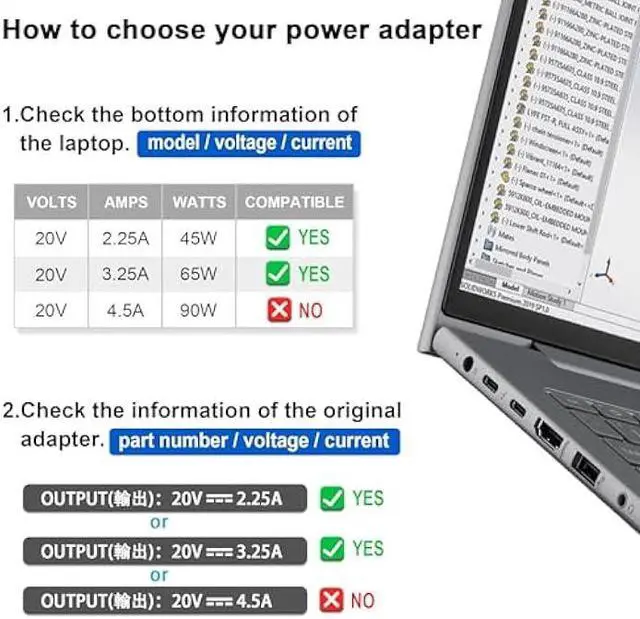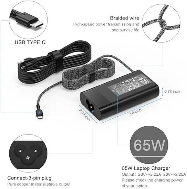 Output: 5V 3A /9V 3A /12V 5A /15V 4.33A /20V 3.25A, MAX Power 65W (Compatible with 45W HP Computer Charger USB C);