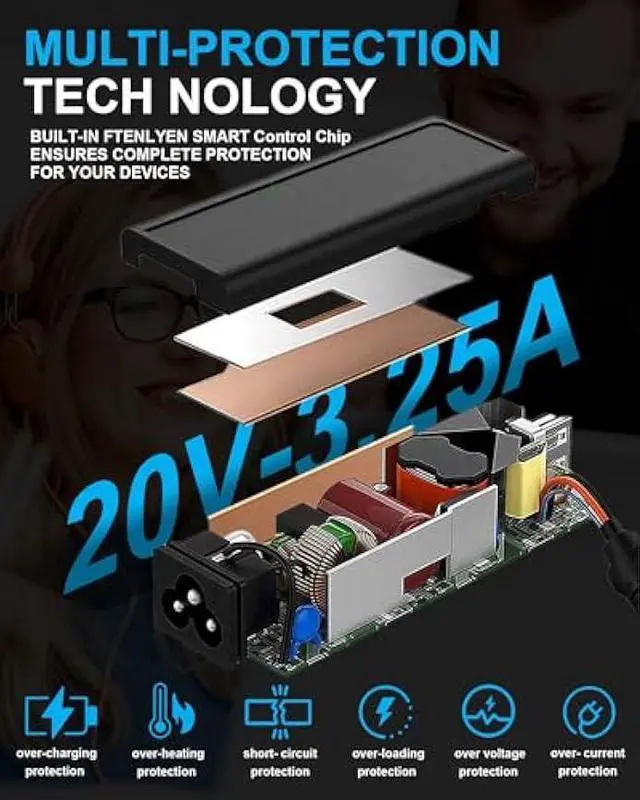 SPECS Item: 65W USB C Laptop Charger, Input: 100-240V 50-60Hz~ 1.2A, Output: 5V-3A / 9V-3A / 12V-3A / 15V-3A / 18V-3A / 20V- 3.25A, Connector