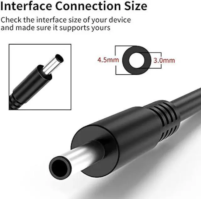 • Ryaobwu Product Type: Connector Size: 4.5 x 3.0mm , Input:100-240V 1A 50/60Hz Output: 65W 19.5V 3.34ACompatible with 19.5V 2.31A - 45W. You will get 1x 65W AC adapter and 1x AC power cable