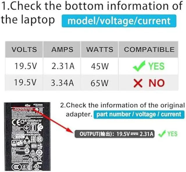 Max Output: 19.5V 2.31A 45W;