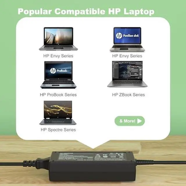 Eokoowo Charger Compatible with P/N: 710412-001 709985-001 709985-002 709985-003 709985-004 714657-001 PPP009A PPP009C PPP009D PPP009L-E PA-1650-32HE PA-1650-32HE TPN-LA03 845611-001 PA-1450-56HA 845836-850 A045R07DH PA-1450-36HE HSTNN-LA40 ADP-45FE B HSTNN-DA40