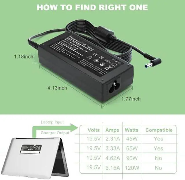 Output: DC 19.5V - 3.33A. 65W (Also Compatible With 19.5W 2.31A 45W);