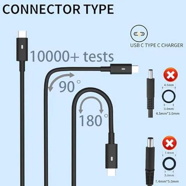 Connector Size: USB-C Type-C. Compatible with 60W (20V 3A), 45W (20V 2.25A ).