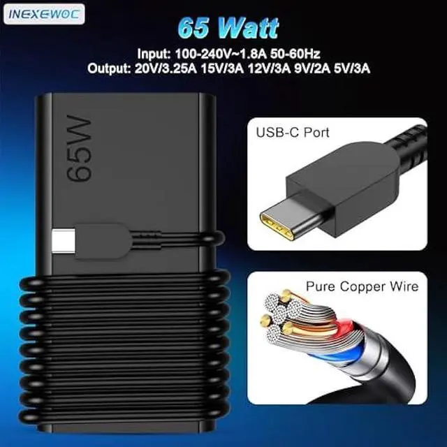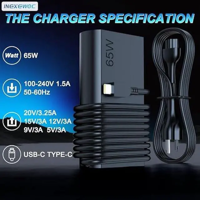 INEXEWOC New Slim 65W USB C Laptop Charger Compatible with