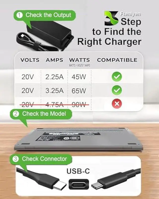Compatible with Lenovo 65W USB C Charger Exclusively designed to compatible with Lenovo laptops (65W & 45W, USB C connector), e. g. Compatible with ThinkPad, IdeaPad 3i Chromebook, Chromebook, Yoga, Flex, Thinkbook laptops with USB C power connector.