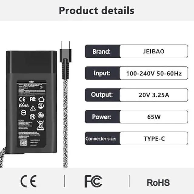 Wide Compatibility: JEIBAO 65W usb c laptop charger is compatible with Envy X360 Charger, envy x360 2 in 1, envy x2 series 12-e011nr 12-e068ms 12-e091ms 12-g018nr laptops, envy x360 15M 13 15 15m-bp111dx 15m-bp112dx 15m-cn0011dx 15m-cp0012dx, Envy, HP Envy X360, Spectre x360 charger, Spectre x360 13 15 13-AC000 13-AE000 13-AF000 13-AW 13-AP, Elite X2 13-w063nr, Spectre x2 12 Pro 13 G1