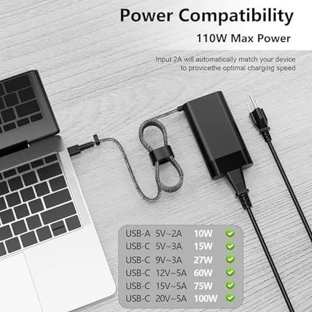 100W USB-C AC Adapter for HP Envy Laptop 17-cw1000/ Pavilion Plus Laptop 14t-ew100 14-ew100 charger