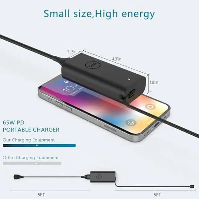 What you get1x AC adapter & 1x 3.9 ft AC power cable. Ideal Bakup Charger, whether you're on your daily work, study, entertainment, business travel or other outdoor activities, it's easy to put in your bag to meet your charging needs anytime, anywhere.