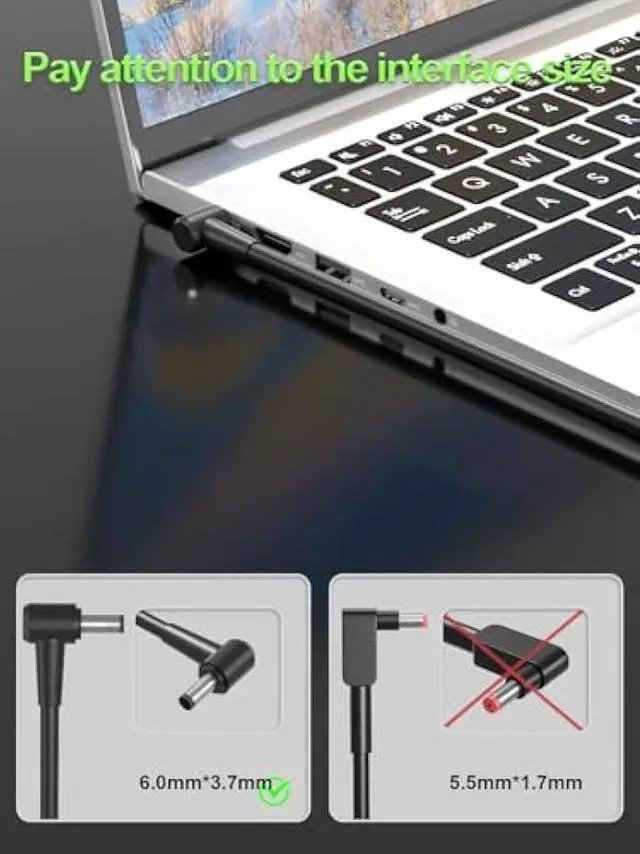 Power Jack Port Connector Type: 6.0 mm X 3.7 mm with central pin inside (It is not work laptops requiring more than 200W)