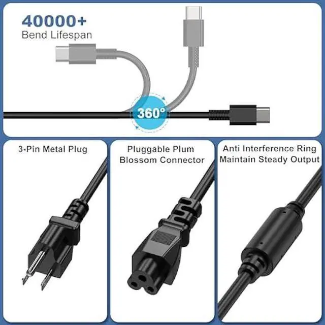 Here's you can get: 1 x 65W power adapter, 1 x high-quality AC cable, 24-hour friendly customer service, 30-day money-back guarantee, 12-Month warranty.