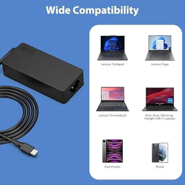 Fit for Lenovo Thinkpad Charger ThinkPad T480 T480s T490 T490s T495s T580 T580s T590 T495S L380 L390 L480 L490 E14 E15 E480 E485 E490 P14s P43s P51s A275 A285 A475 A485 65W USB C Laptop Charger