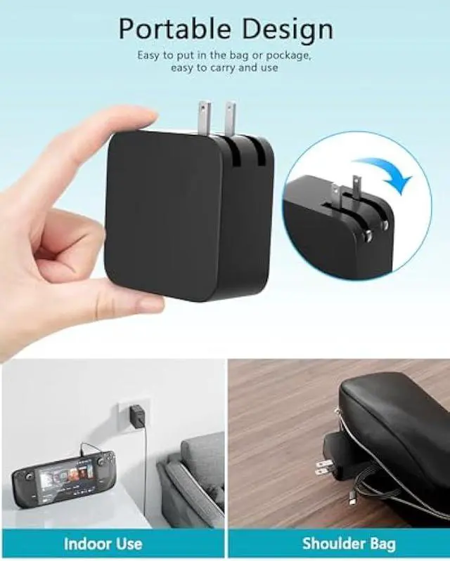 What you get1x AC adapter & 1x 3.9 ft AC power cable. Ideal Bakup Charger, whether you're on your daily work, study, entertainment, business travel or other outdoor activities, it's easy to put in your bag to meet your charging needs anytime, anywhere.