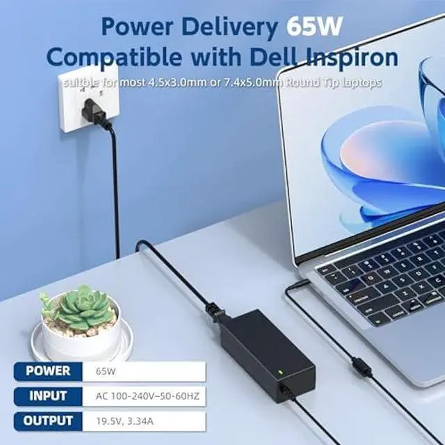 Tips: 4.5 x 3.0 mm Round Connectorinclude an 7.4 x 5.0 mm connector inside the boxdelivers stable 19.5V / 3.34A output to power laptops. Safe charging across 65W/45W