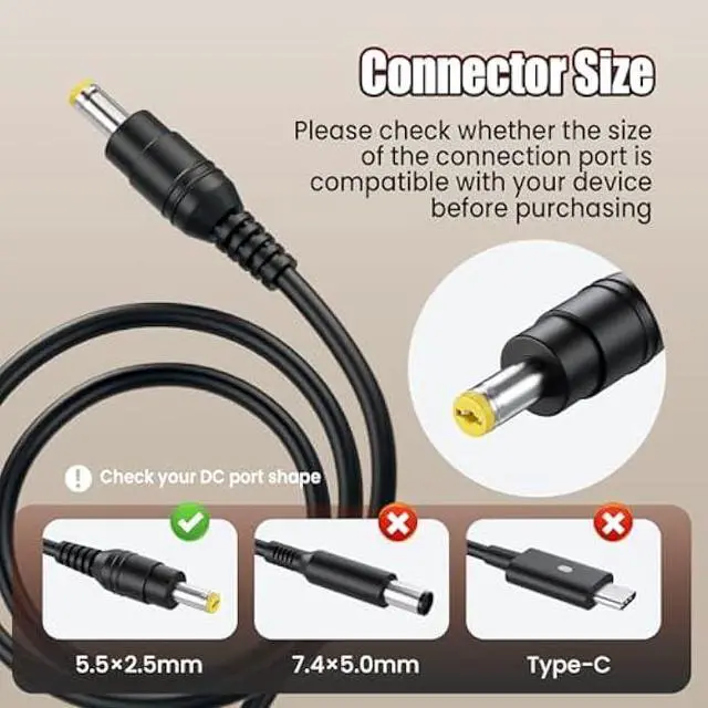 mm (Note: Please make sure the DC output and tip size of ac adapter are accordant before you buy)