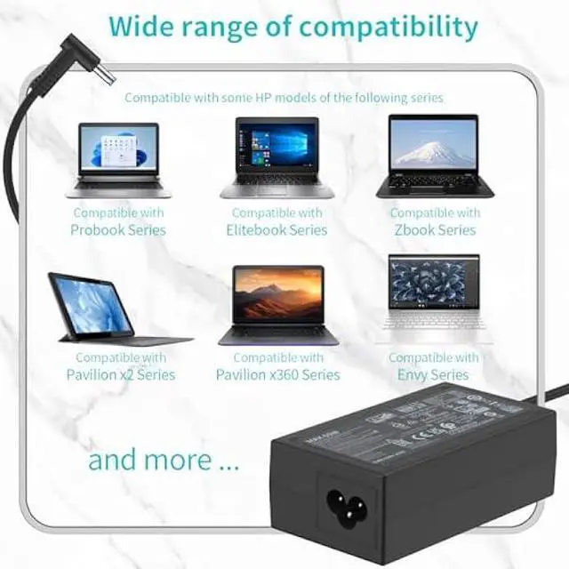 Compatible with HP 65W/45W Elitebook 830 / 840 G3 G4 G8 / 850 G3 G4 / ProBook 430 G8 / 440 G8 / 450 G3 G8 / 640 G2 G3 G4 / 650 G2 G3 / Pavilion x360 / Stream 11 Pro G3 / Stream 11 Pro G4 EE / Chromebook 11 EE G2 G3 G4 / Spectre x360 x2 / Notebook 15 / Zbook