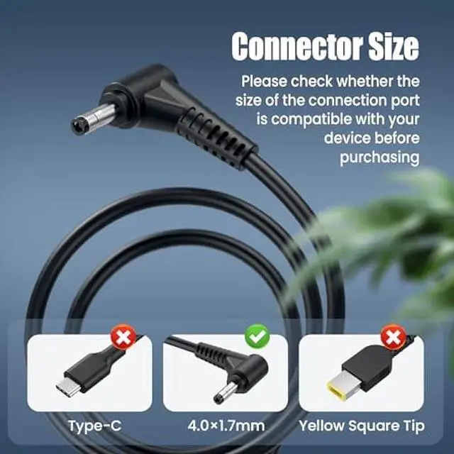 Perfect Fit for Laptops Charger Compatible with Lenovo IdeaPad 1 3 5 Series (e. g. 1-14ADA7, 3-15IIL05, 5-15ALC05), Flex 4 5 6 Series (4-1480, 5-14ARE05, 6-14ARR), Yoga 310 510 520 710 Series, V14 V15, and Chromebook N22 N23 N42. (Round Tip 4.0 × 1.7 mm ONLY)