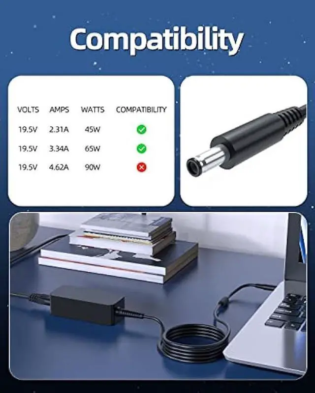 Output: 19.5V 2.31A 45W Input: 100-240V 50-60Hz