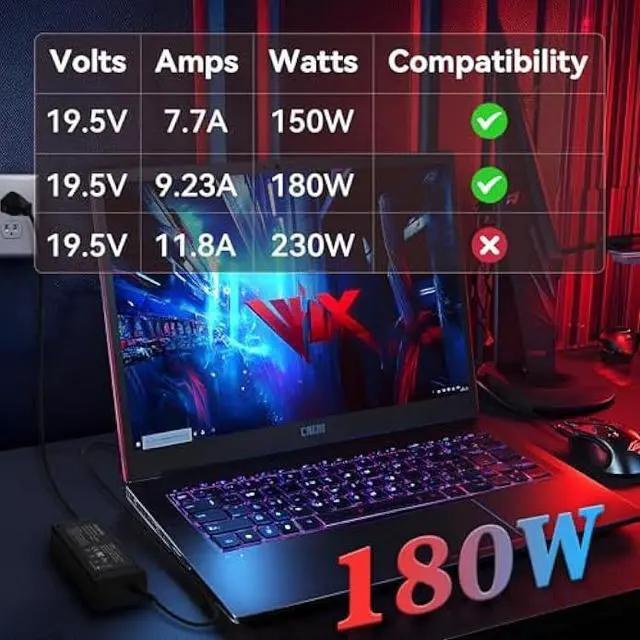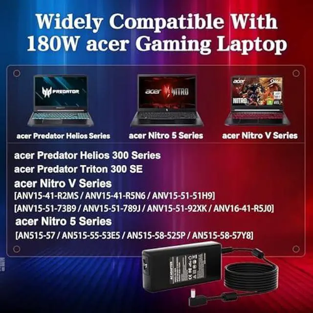 N20C1 For Acer Predator Helios Gaming LaptopOutput DC: 180W 19.5V 9.23A (Also Compatible With 19V 7.1A 135W), AC