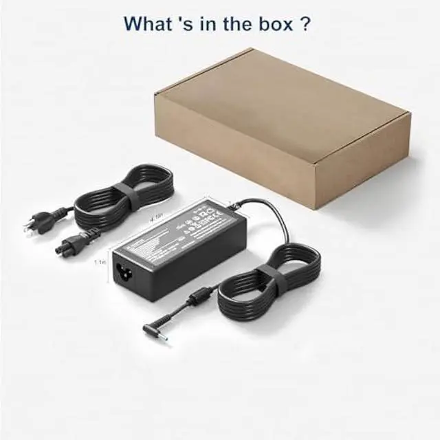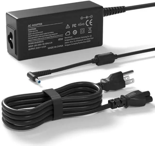 Input: 100-240V50-60Hz; Output: 19.5V 2.31A 45W (Max) DC Plug: 4.5 * 3.0 mm, Blue Tip With Central Pin Inside 1x 45W Laptop Power Adapter; 1x Ac Power Supply Cord/Charging Cable