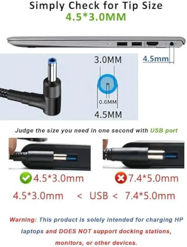 HP Laptop Charging Cable - Travel friendly with lightweight & compact portable design that you can get rid of the heavy chargers / power bricks, and carry it in your backpack even in shirt pocket.