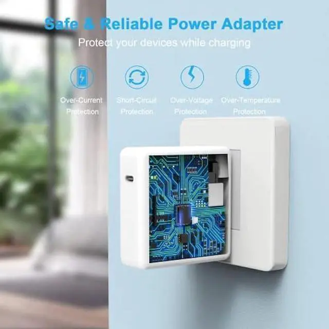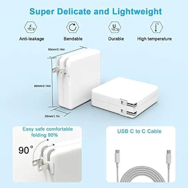 100W Macbook Charger Features100w usb-c power adapter is light weight and takes up little space. AC adapter is compatible with more apple product models. Macbook charger meets electrical safety and design standards. Built-in IC chip technology protects against short circuits, overvoltage, overcurrent and internal overheating without worrying about functional device damage. Keeps your laptop safe from battery charging while you work