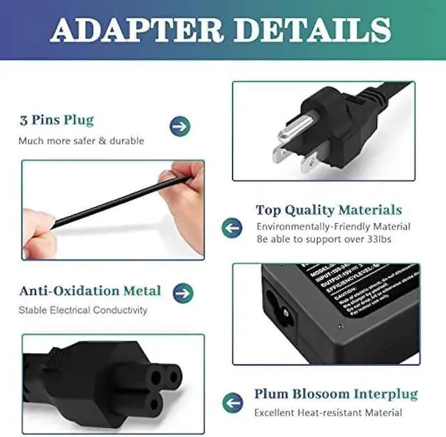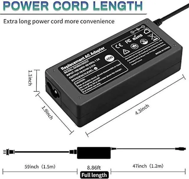 Safety & Service: CE-/FCC-/ROHS Certified for safety, You will get Easy Style 65W AC adapter charger and 5ft power cord
