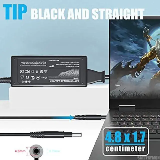 • Output: 19.5V 3.33A, 65W Input: 100-240V, 50-60Hz Connecter size: 4.8 mm×1.7 mm (P/N: 693715-001, 677770-001,677770-002, 677770-003, 613149-003, ADP-65HB FC, DL606A#ABA, PPP009D)