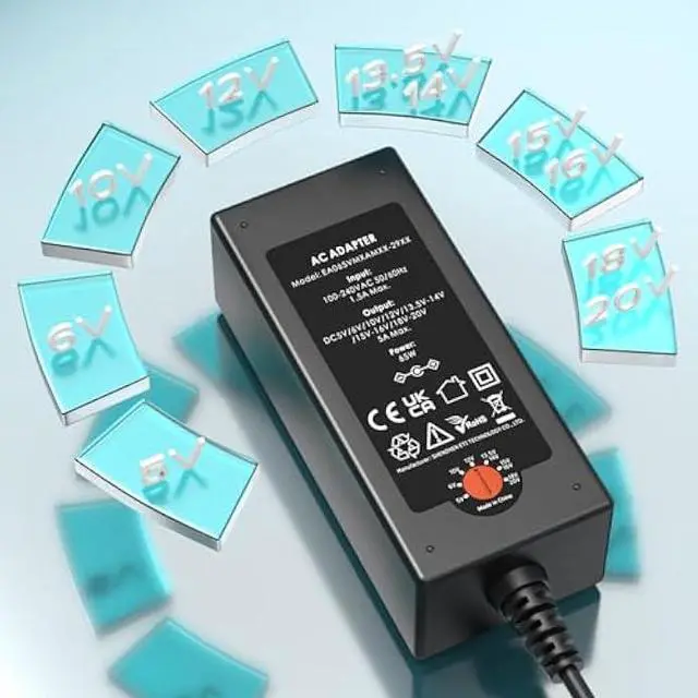 This universal power adapter features multiple protection including overvoltage protection, overcurrent protection, short circuit protection, overheat protection and can power up many devices no more than 65 watts.