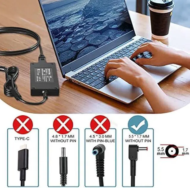 Connector Size: 5.5 mm* 1.7 mm Tip. (Not fit USB-C/ 5.5 * 2.5 mm port)