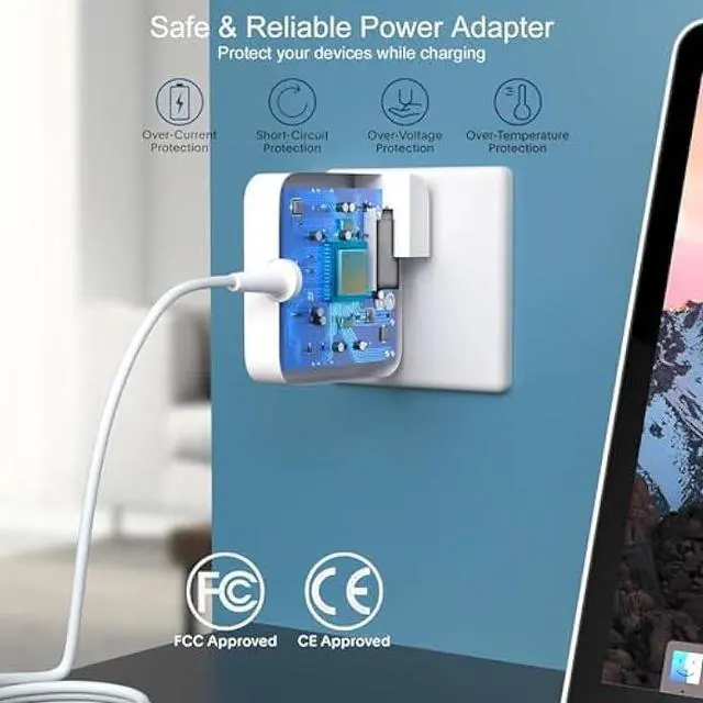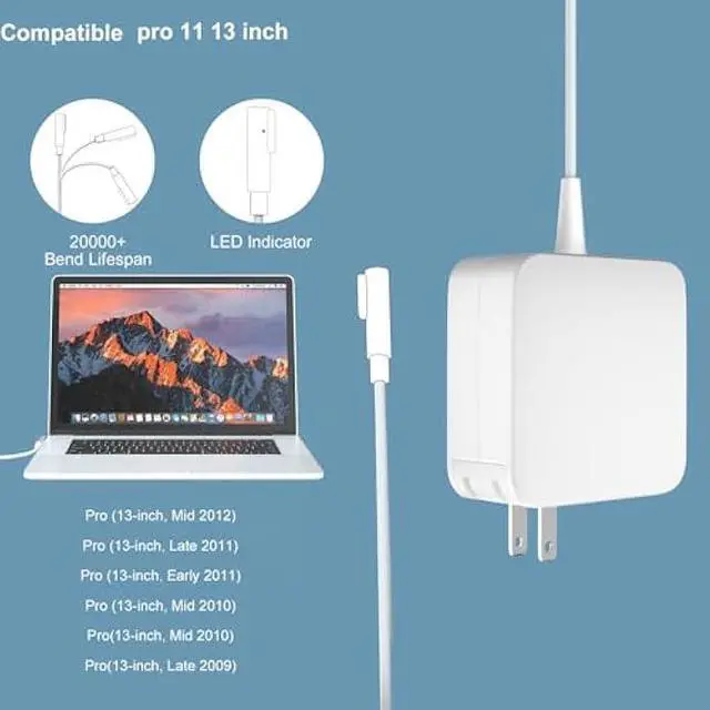 Certified Safety: This Compatible with Mac book charger With CE/FCC/ROHS certified, ensuring that you can use it safely and securely. Charger features a built-in heat sink dissipates heat to keep the charger from overheating and Laptop charger runs safe and cold during the entire charging cycle. The durable power cords remain intact and safe even after 30, 000 repeated bends.