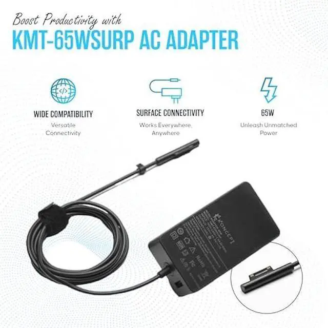 Efficient Power Supply - With a 65W output, this adapter delivers optimal power to your Microsoft Surface devices, ensuring fast and reliable charging.