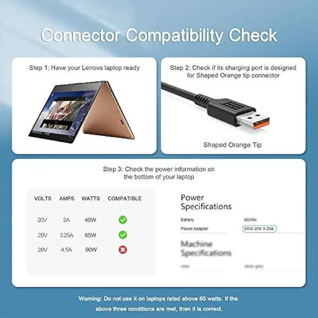 • Compatible with Lenovo Yoga, Ideapad MIIX 3 Pro 1370 1170 1470, 700-11ISK 700-12ISK 700-14ISK 900S-12ISK 900-13ISK 900-13ISK2 700S-14ISK 710-12IKB 710-12IKB-LTE Laptop. Only for amperage equal or less than 3.25A.